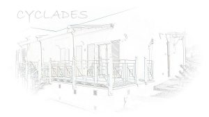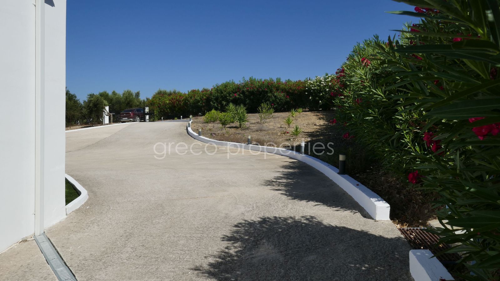 Das Haus “CYCLADES” liegt auf einem flachen Hügelplateau mit lockerer Ferienhausbebauung, inmitten unendlich weiter Olivenhaine. Es ist über eine 700m lange, gut fahrbare Schotterstraße ohne nennenswerte Steigungen bequem zu erreichen.