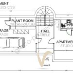 Das Untergeschoss beherbergt ein komfortables Schlafzimmer mit eigenem Bad. Es bezieht sein Tageslicht durch ein langes Oberfenster. Derzeit wird dieser Bereich als Gymnastikraum mit eigenem Duschbad genutzt. Auf der gegenüberliegenden Seite der Diele befindet sich die 35m² große Garage, die über eine ebenerdige Zufahrt bequem befahrbar ist. Ein Waschbereich und ein Technikraum runden das beträchtliche Raumangebot des Nutzbereiches ab.